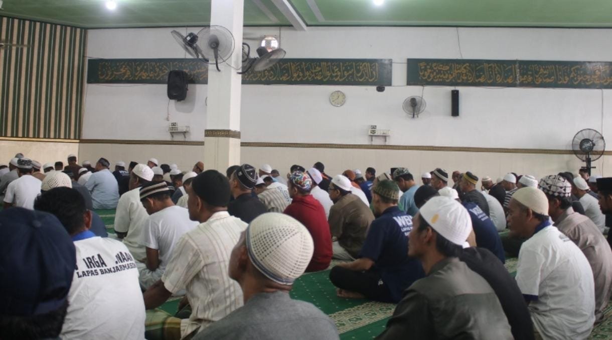 Warga Binaan Pemasyarakatan (WBP) Lapas Kelas IIA Banjarmasin kembali melaksanakan kegiatan Jumat Taqwa di Masjid Baabud Taqwa, Jumat (12/09). Kegiatan ini diawali dengan lantunan Maulid Habsy dan syair-syair islami yang dibawakan penuh kekhusyukan oleh para santri WBP.