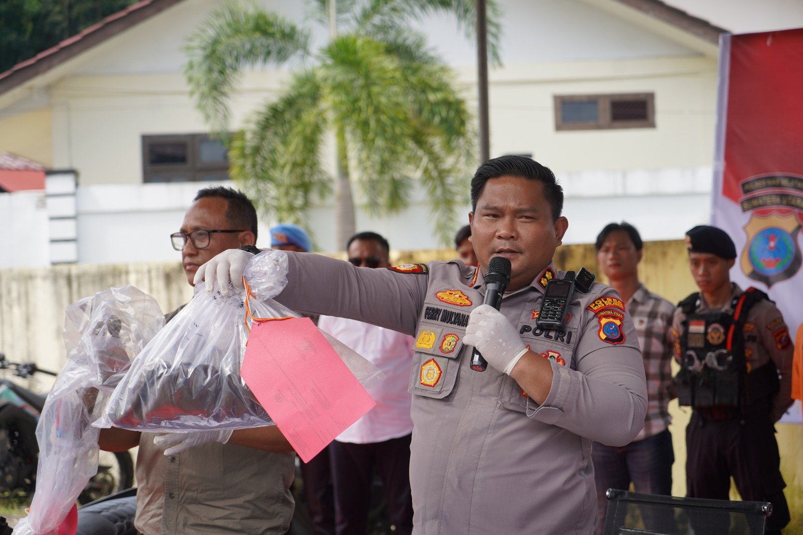 Seruan ini disampaikan Kapolres menyusul terungkapnya dua kasus pembunuhan yang terjadi dalam rentang waktu kurang dari dua minggu. Kasus pertama menimpa inisial EH alias Ama Yunisman, warga Desa Sinar Baho, Kecamatan Lahusa, yang tewas akibat dipukul dengan belencong atau gancu pacul tanah oleh tetangganya sendiri, SH alias Ama Arfan, pada Rabu (6/8/2025). Motif pembunuhan ini dipicu oleh persoalan sengketa lahan dan dendam pribadi.