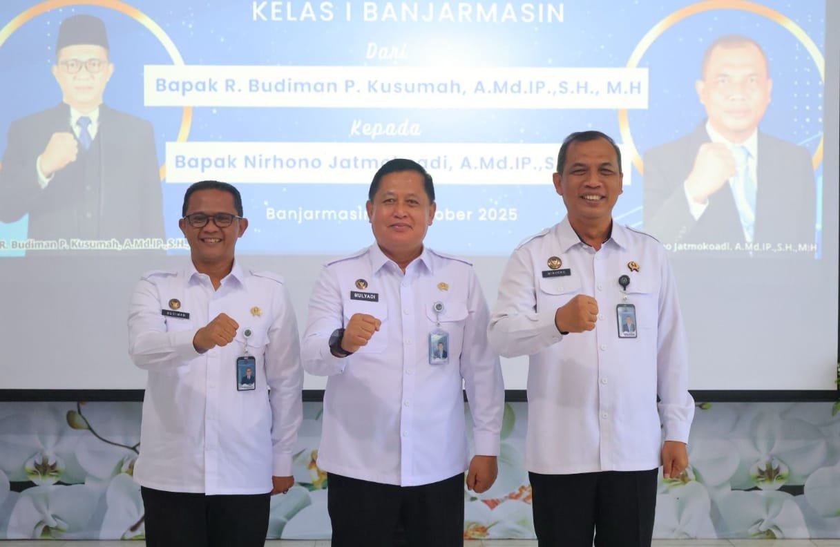 Estapet kepemimpinan Bapas Banjarmasin berpindah dari pejabat lama, Pelaksana Tugas (Plt) Raden Budiman Priatna Kusumah, kepada pejabat baru, Nirhono Jatmokoadi. Mulyadi sampaikan apresiasi kepada pejabat lama atas dedikasi dan kontribusinya selama menjabat.