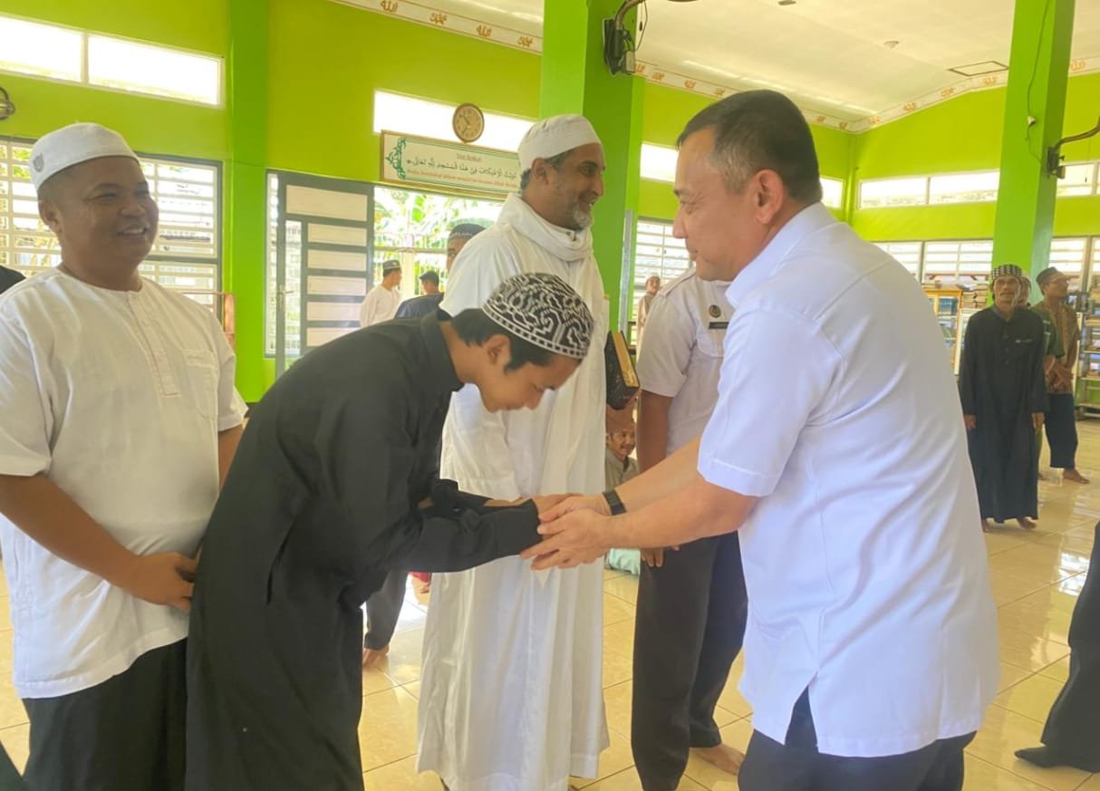Kepala Lembaga Pemasyarakatan (Kalapas) Narkotika Kelas IIA Karang Intan, Yugo Indra Wicaksi, bersama Kasubsi Portatib yang baru, Sondang Paiya Bakara, serta jajaran pejabat struktural, menyapa sekaligus memperkenalkan diri kepada warga binaan di Masjid At-Taubah, Kamis (2/10).