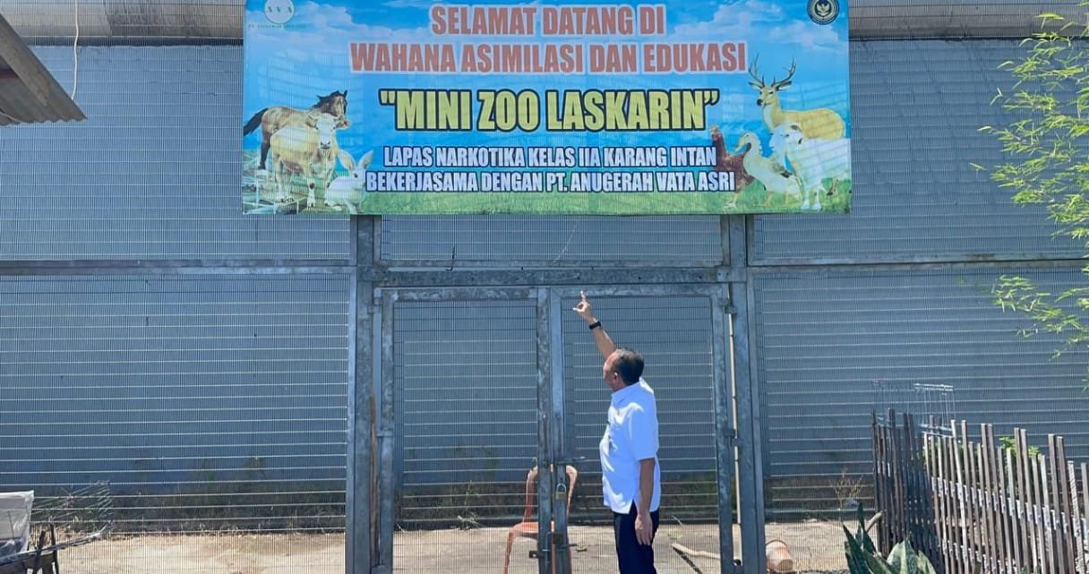 Kepala Lembaga Pemasyarakatan (Kalapas) Narkotika Kelas IIA Karang Intan, Yugo Indra Wicaksi, untuk pertama kalinya meninjau langsung Wahana Asimilasi dan Edukasi (WAE) 3 Mini Zoo, Kamis (2/10).