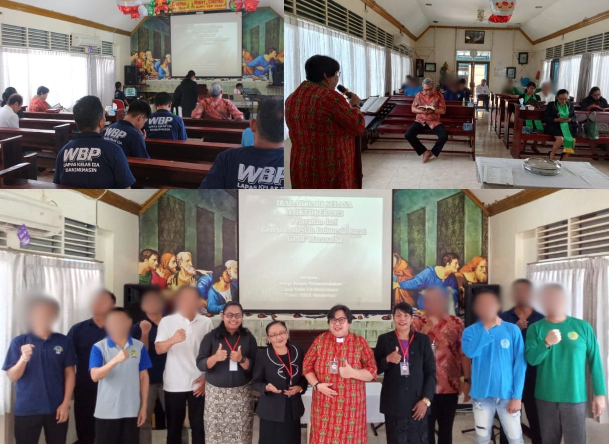 Suasana khusyuk dan penuh sukacita menyelimuti Gereja Oikumene Lembaga Pemasyarakatan (Lapas) Kelas IIA Banjarmasin pada Selasa (14/10), saat dilaksanakannya Ibadah Rutin Bulanan yang dipimpin oleh Pendeta Ike Priscilla, S.Th dari Gereja Protestan Indonesia Barat (GPIB) Maranatha.