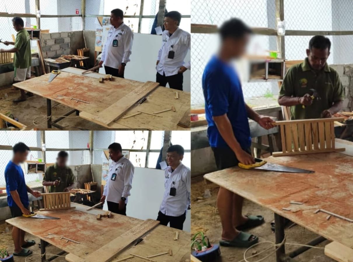 Kasubsi Sarana Kerja Lapas Kelas IIA Banjarmasin, Suratno, melakukan pemantauan langsung terhadap pembinaan kemandirian warga binaan pemasyarakatan (WBP) di bidang meubel pada Senin (20/10).