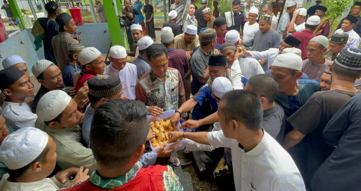 Suasana hangat dan penuh kebersamaan terasa di Masjid At-Taubah Lapas Narkotika Kelas IIA Karang Intan seusai pelaksanaan Salat Jumat, Jumat (14/11). Dalam momen penuh berkah tersebut, petugas Lapas membagikan gorengan berupa tahu isi, bakwan, serta kopi hangat kepada warga binaan yang baru selesai melaksanakan ibadah.