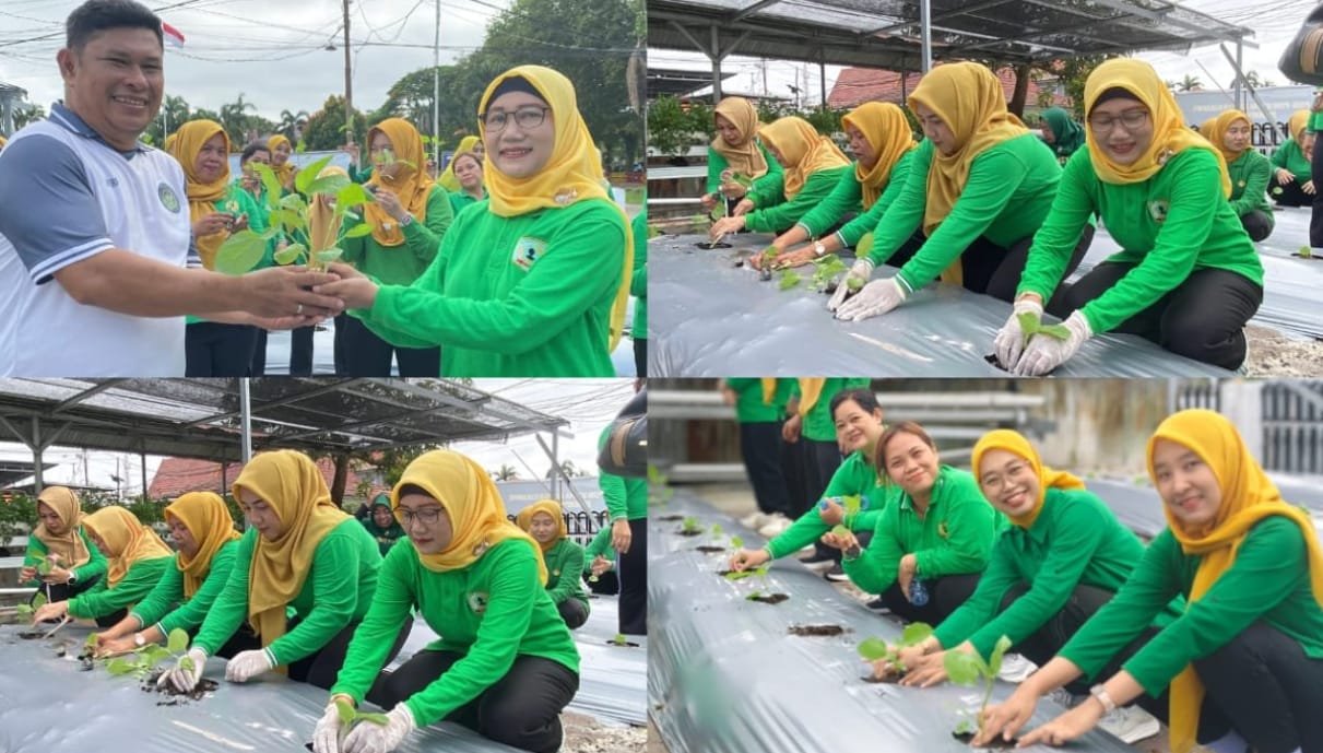 Seusai kegiatan panen, ibu-ibu Paguyuban Ibu-Ibu Pemasyarakatan (PIPAS) Cabang Lapas Banjarmasin melanjutkan kegiatan dengan menanam bibit terong di area pertanian ketahanan pangan, Jumat (7/11).